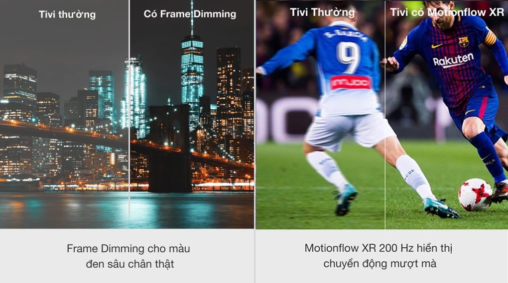 Tivi được trang bị công nghệ đèn nền Direct LED Frame Dimming với khả năng làm giảm độ sáng các đèn LED được bố trí dọc cạnh màn hình, nhằm tăng độ tương phản cho hình ảnh hiển thị.