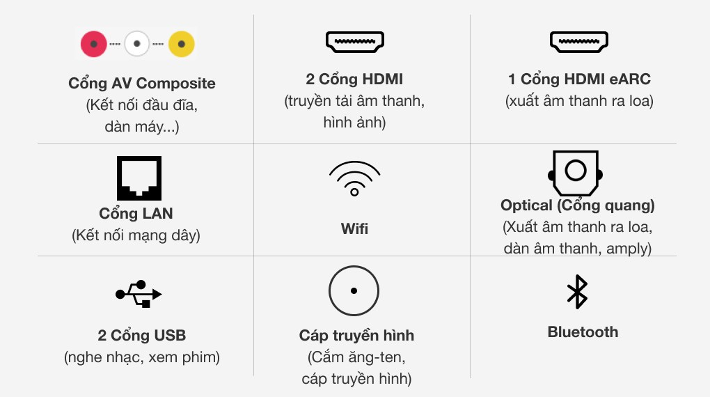 Bên cạnh đó, tivi còn được hỗ trợ HDR10, HLG giúp tăng cường độ tương phản, chi tiết hình ảnh, sắc trắng tinh khiết hơn, sắc đen sâu.