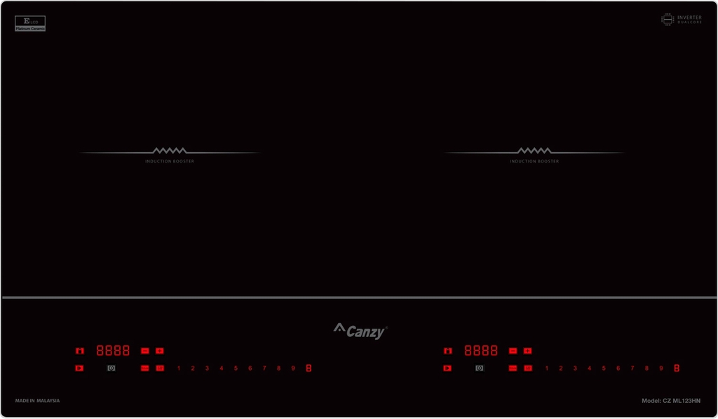 Bếp từ Canzy CZ-ML123HN gồm 2 vùng nấu với tổng công suất 6000W. Vùng nấu trái có công suất 2500W khi kích hoạt tính năng nấu siêu nhanh Booster công suất lên tới 3000W. Vùng nấu phải có công suất 2500W khi kích hoạt tính năng nấu siêu nhanh Booster công suất lên tới 3000W. Chỉ trong chốc lát sau khi kích hoạt tính năng này, nhiệt lượng trên vùng nấu từ tăng lên công suất tương đương với mức nhiệt lượng lớn nhất. Do đó, các món ăn được nấu chín nhanh hơn, tiết kiệm thời gian vào bếp cho chị em nội trợ. Chức năng Booster nấu siêu nhanh, tuy nhiên thời gian tối đa mặc định dùng chức năng này là 10 phút / lần tránh quá tải.