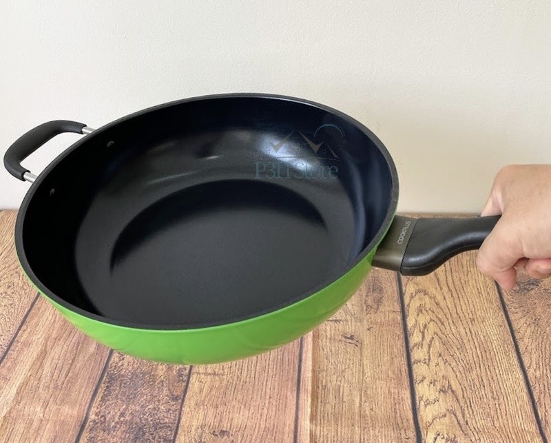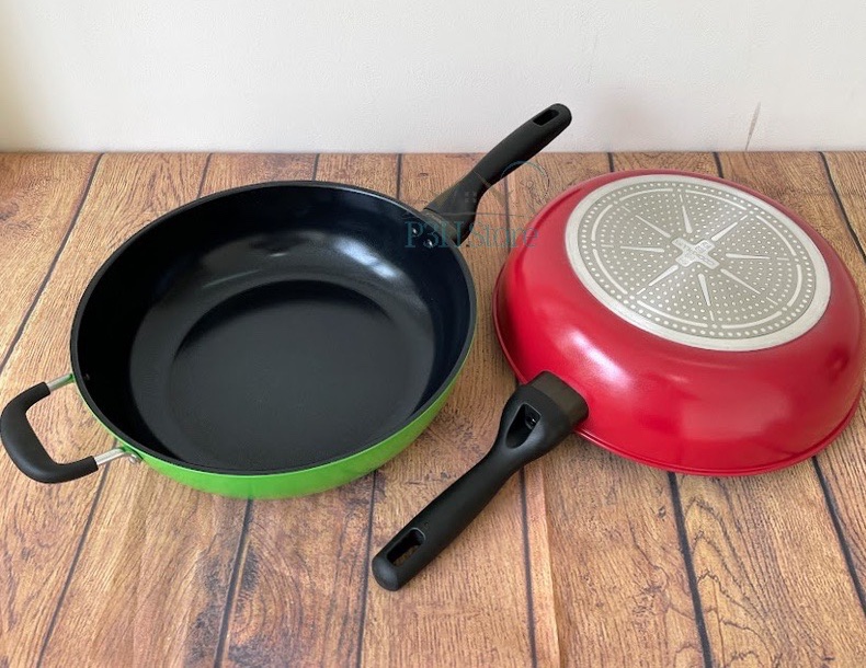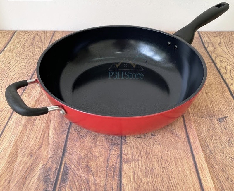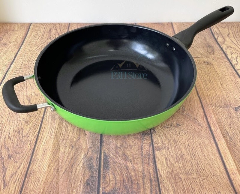 Màu sắc: Xanh lá, đỏ Kích thước: đường kính 32cm Chất liệu: Alluminium, lớp phủ chống dính Teflon, lớp chịu nhiệt bên ngoài, tăng độ bền cho sản phẩm. 🌈 Chất liệu siêu nhẹ nên dù kích thước chảo rất lớn, nhưng vẫn tiện lợi cho mọi người nấu với lượng thức ăn lớn mà không bị nặng. 🌈 Chảo được thiết kế thêm quai cầm giúp thao tác thuận lợi hơn khi chế biến thức ăn. 🌈 Có thể sử dụng cho bếp điện từ.