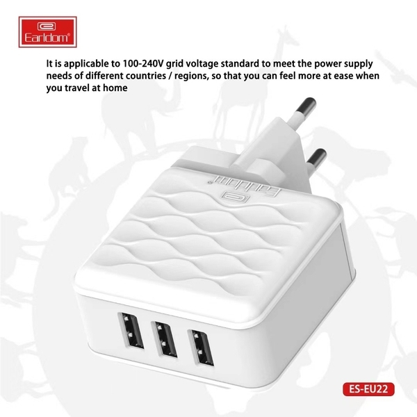 Củ Sạc Nhanh 3 Cổng USB Earldom ES-EU22