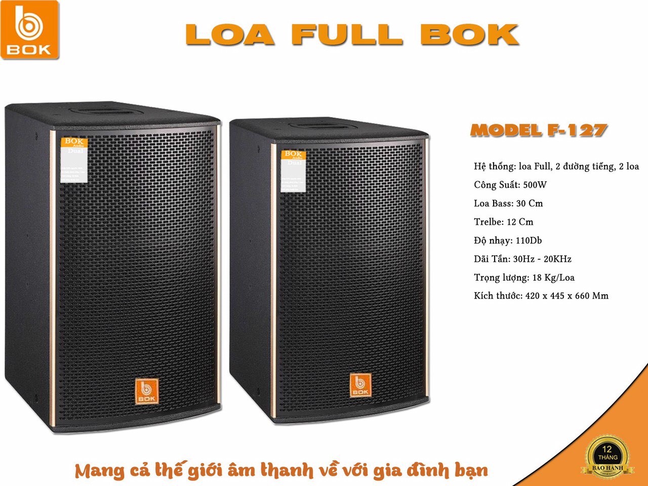 Loa Full 2 Đường Tiếng 2 Loa 500W BOK F-127 bass30
