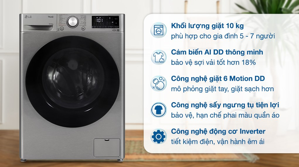 Cho phép điều khiển máy giặt từ xa qua ứng dụng LG ThinQ