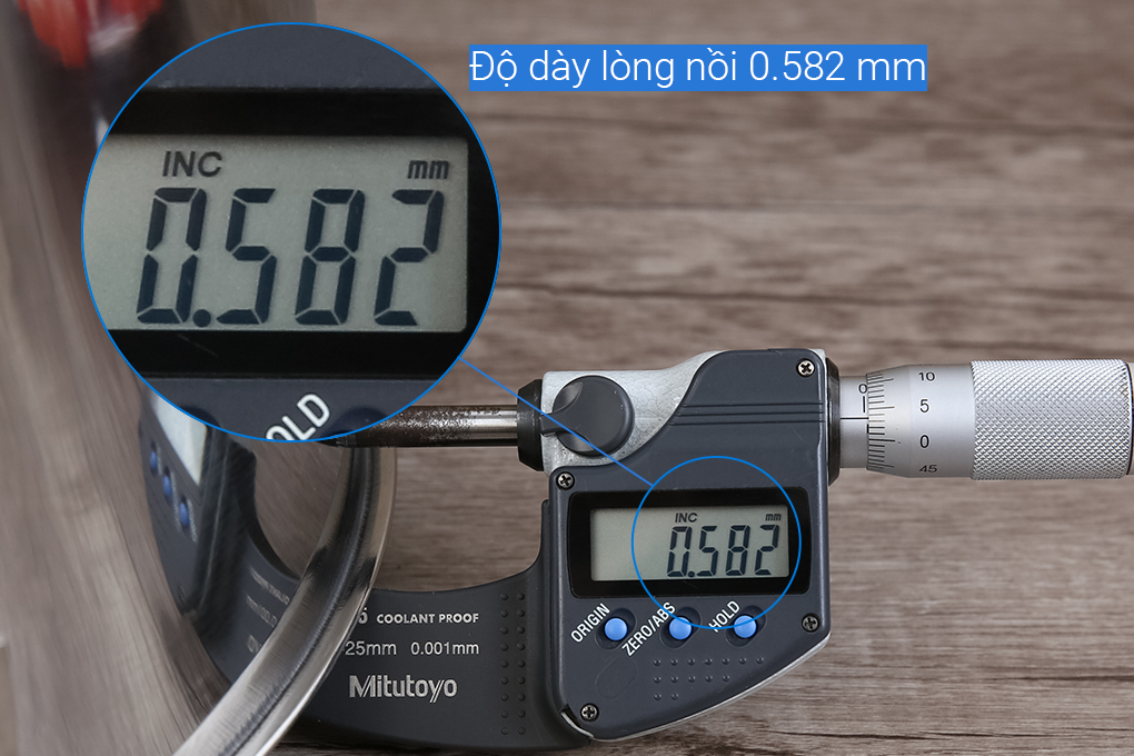 Đáy 3 lớp dày 0.582 mm dạng phảng có khả năng truyền nhiệt nhanh và giữ nhiệt tốt, rút ngắn thời gian làm chín thực phẩm, tiết kiệm điện năng