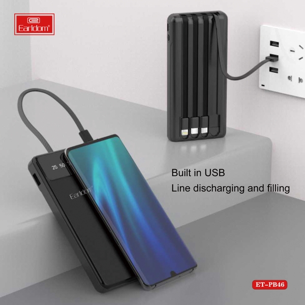 Sạc Dự Phòng Kèm Sạc 3 Đầu Earldom 10.000mAh ET-PB46