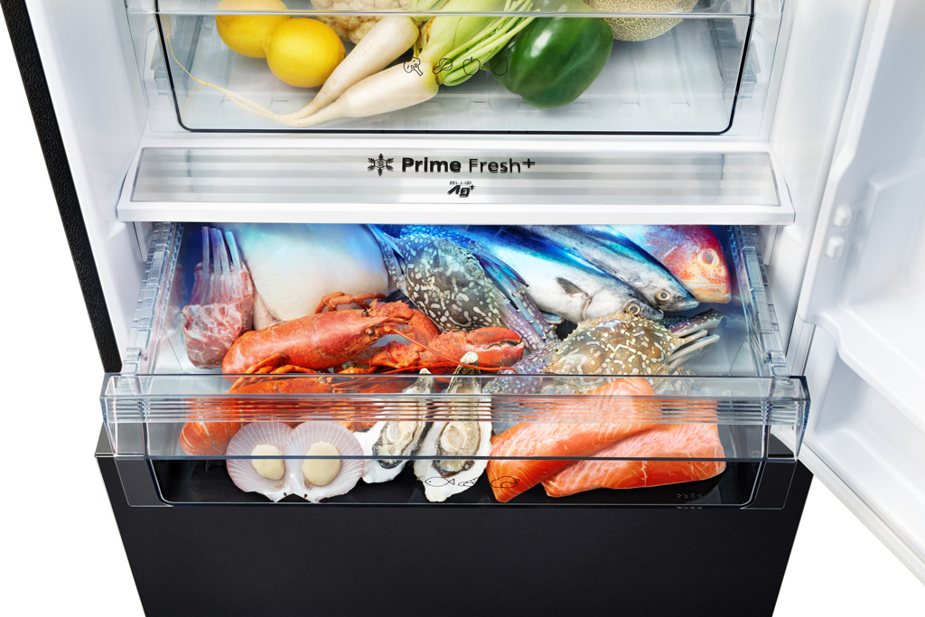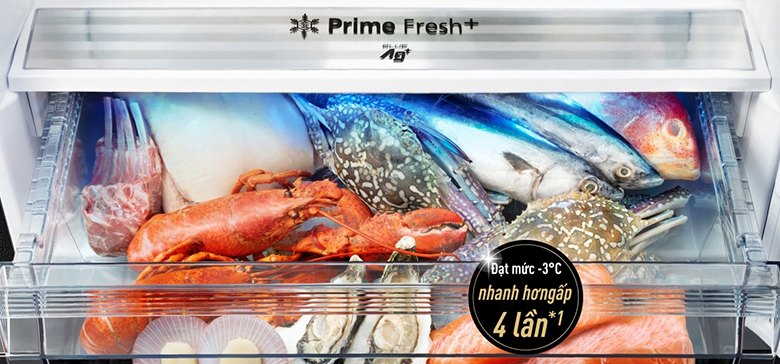 Thực phẩm tươi sống, đặc biệt là thịt cá luôn ngon nhất khi mua về, tuy nhiên, làm thế nào để giữ được hương vị tươi ngon mà vẫn an toàn cho sức khỏe nếu cần bảo quản lâu hơn? Tính năng cấp đông mềm Prime Fresh với luồng hơi lạnh mang nhiệt độ lí tưởng -3°C giúp thực phẩm được bảo vệ bởi lớp đông nhẹ trên bề mặt, ngăn chặn sự oxi hóa và vi khuẩn xâm nhập vào bên trong mà không bị làm đóng băng, không phá vỡ cấu trúc tế bào. Bảo quản ở trạng thái đông mềm giúp giữ được độ tươi ngon trong khoảng 7 ngày, giảm tối đa sự hao hụt dưỡng chất và giúp chế biến món ăn tiện lợi, dễ dàng mà không cần phải rã đông. Chế độ Prime Fresh+ để thực phẩm đạt trạng thái cấp đông mềm nhanh hơn gấp bốn lần, giảm thời gian biến đổi chất.