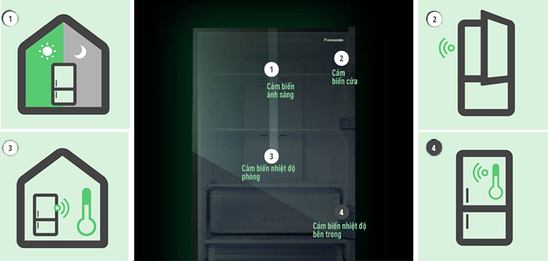 Công nghệ Econavi với 4 cảm biến gồm: Cảm biến ánh sáng, Cảm biến nhiệt độ bên trong, Cảm biến nhiệt độ phòng, Cảm biến cửa tủ. Chúng giúp tủ lạnh của bạn có khả năng tự động nhận biết, phân tích các yếu tố bên trong và bên ngoài ảnh hưởng đến nhiệt độ và tự điều chỉnh nhiệt độ để duy trì mức làm mát lý tưởng và tránh gây lãng phí năng lượng.